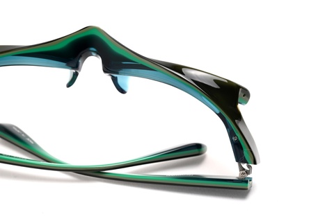 ブローフレームとして完成度の高い名作「FA-208」、躍動感のある「FA-248」、流麗な「FA-298」とブランドを代表するブローフレームが多数存在しますが、どのモデルとも異なるエッジーな「FA-323」はレンズシェイプなども含め、デザイナー田村の手掛けたニオイが感じ取れるデザインになっています。