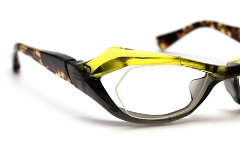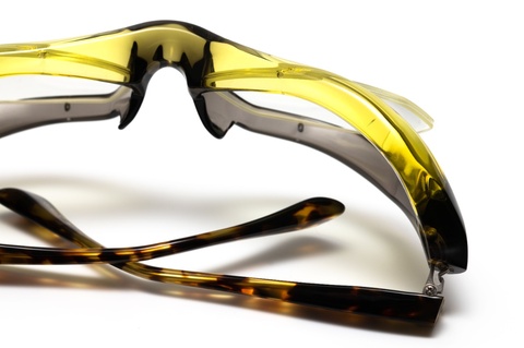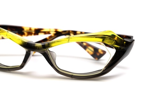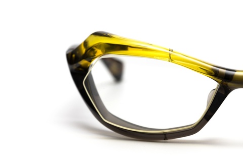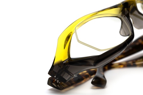 FACTORY900ならではの流線形のフォルムに加え、フロントの上下で異なる色使いによってより躍動感のあるアクティブなイメージを印象づけます。また、それを可能とした青山眼鏡の技術力の高さ、そしてチャレンジ精神が垣間見れるモデルといえるのではないでしょうか。しかし、その製造工程における難易度は非常に高く、完成までには多くの手間と時間を要します。結果として、その人気とは裏腹に生産終了という決断が下されました。