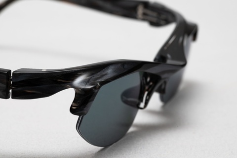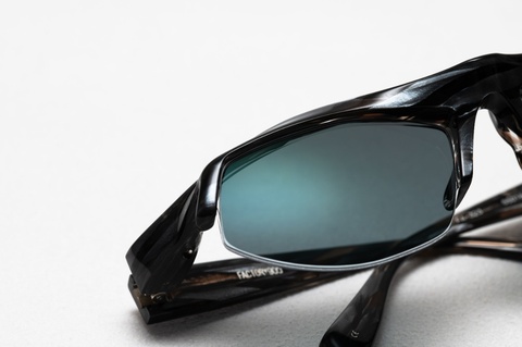 一般的な偏光レンズは、偏光フィルムをレンズにサンドしていることにより、「FA-323」のようなレンズの側面に溝を掘るナイロール構造には適していません。対して、”POLATECH”は従来の偏光フォルムではなく、ポラテックコートと呼ばれる”コーティング”になり、ナイロール構造のフレームにも対応することが可能であり、また、レンズの厚みも従来の偏光レンズに比べ薄く仕上がることも大きなメリットになります。