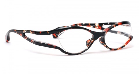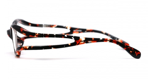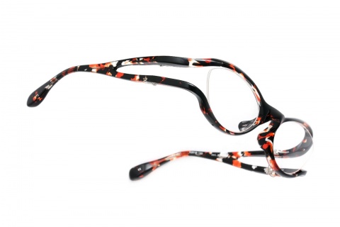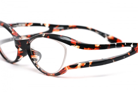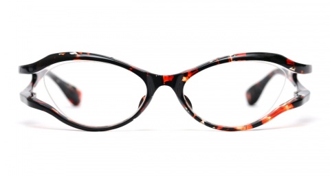 「FA-340」は新品番ということもあり、そのテーマである二股のテンプルにフォーカスを当てるため、意図的にプレーンなモデルとして描かれました。対して今回の「FA-341」は、フォックス型のような下から突き上げるような独特な玉型を細いラインでトレースするかのようにカタチづくられています。