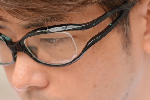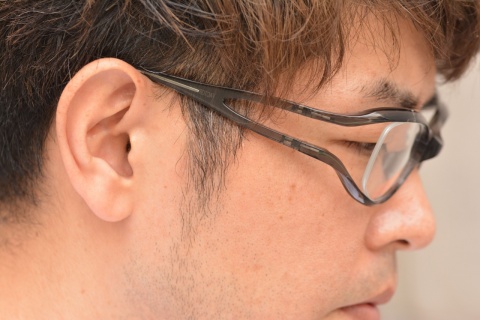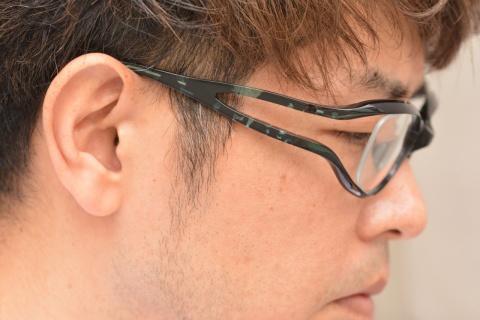 実際に掛けてみると、二股に分かれた特徴的なテンプルの所々に見える緑の柄が程良いアクセントとなり、比較的プレーンな「FA-340」に遊び心をプラスします。