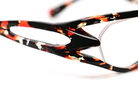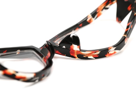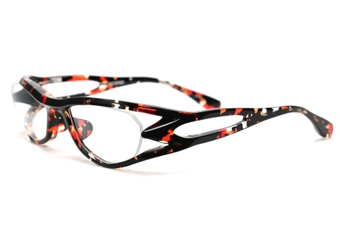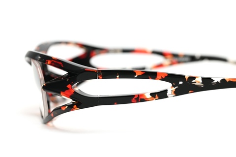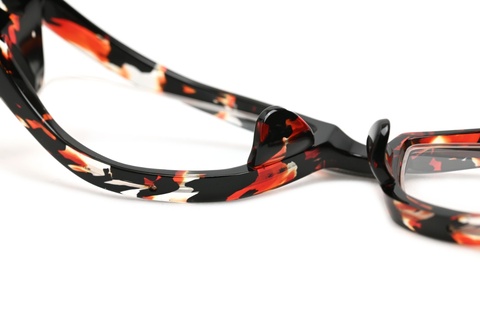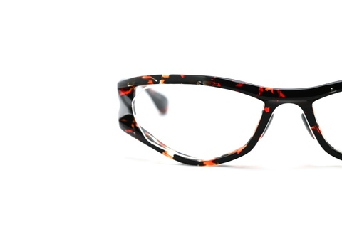 レンズシェイプもシャープでキレのある特徴的なラインです。「FA-341」のフォックス型のようなクセとも異なる強さを感じますが、デザイナーの特徴といいますか、「FA-342」をデザインした田村ならではのラインの強さが垣間見れるレンズシェイプだと思います。
