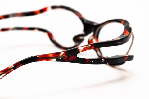 ご覧のように、二股に分かれた智元からテンプルに繋がる美しいラインがなんといっても大きな見所となり、量感で魅せる「FA-440番台」とは異なり、空間を活かした立体的なデザインが流麗なラインをより引き立てます。加えて、フォックス型ならではの下から突き上げるようなラインとキレのあるシェイプ、そこに「FA-341」の造形美が相まって、どこか色気を感じさせてくれるような仕上がりです。