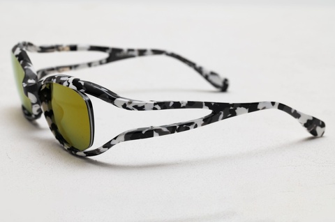 今回お選びいただいた「col.096」(黒迷彩)は、メガネとして掛けるにはインパクトが強くスタイリングにおいてもぐっとハードルが高くなりがちですが、このようにカラーレンズを組み合わせることで、インパクトを和らげることが可能となります。