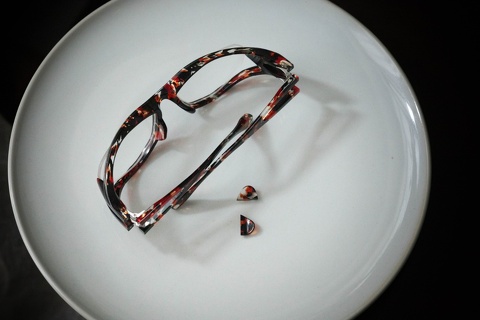 柄系の生地は、フレーム本体も言えますが、このようなパーツの1つ1つも異なる柄になります。その中でフロント本体の柄に寄り添ったパーツを選びつけることで、よりこだわった仕上がりにさせていただきます。我々直営店のちょっとした拘りですが、鼻盛り加工をご検討の皆さんが参考にしていただけたら幸いです。