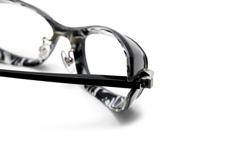 「FA-361A」は医療の現場で使用することを前提として、クリアカラーをチョイスしましたが、今回は日常で掛けることを想定すると、合わせやすくそれでいて背面に見える黒マーブルにようなちょっとした遊び心がポイントです。