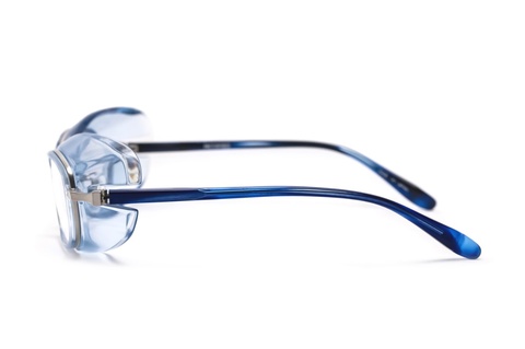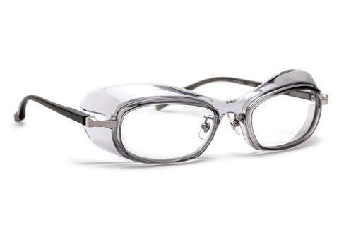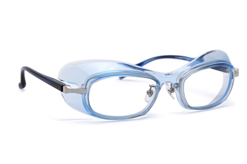 本来はバイカーズゴーグルとして発表した「FA-361」を流用し、医療の現場でご使用いただくことを前提として使いやすいカラーをチョイスしています。見た目はもちろん視野の確保を前提とし、周りの皆さんに威圧感を極力与えず、清潔感のあるクリアグレーとクリアブルーの2色展開です。
