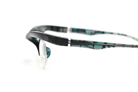 過去には「FA-323」という超攻撃的なフォルムと変則的なレンズシェイプが特徴的なブローフレームもありましたが、「FA-360」はFACTORY900らしい美しい面造形と王道ともいえるレンズシェイプによって成り立っています。どの角度から見てもそれと分かる立体感に満ちたフォルムが、皆さんのお顔立ちをより引き立てます。