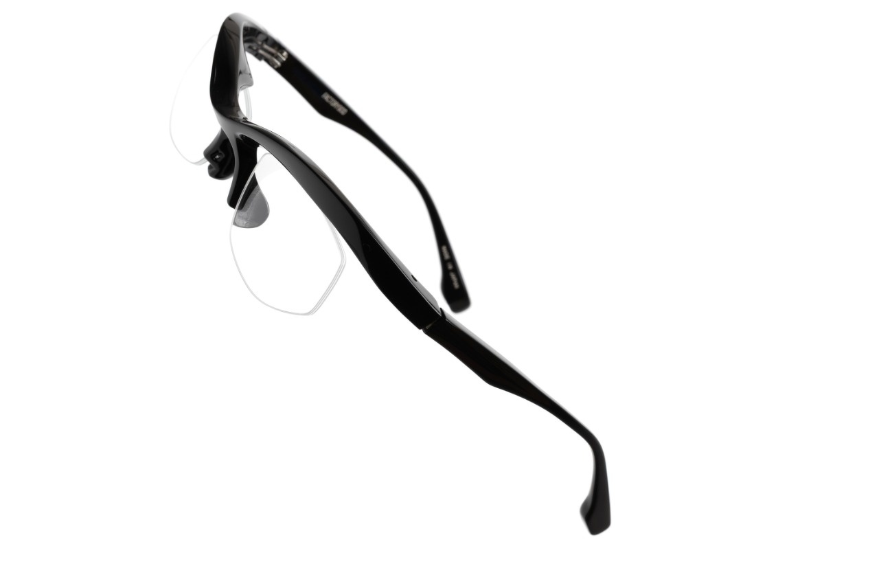 ある意味FACTORY900らしい流麗なラインと奥行きのある立体的なフォルムは、もはやメタルフレームを凌駕するかのようなスタイリッシュな仕上がりです。ナイフのようなエッジーなディテール、まるでスポーツカーのボディーのような面造形は、”FUTURISTICシリーズ”のなかでも群を抜いて美しく、是非いろいろな角度からご覧いただきたいところです。