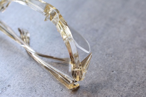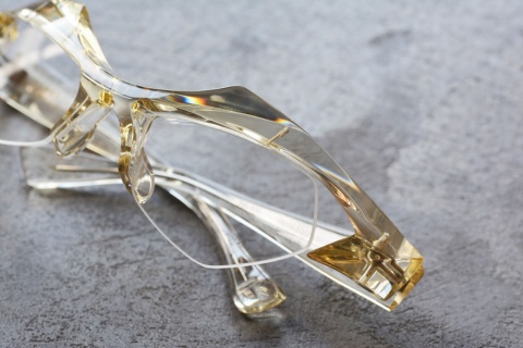 「FA-370」のダイナミックな造形とフロントに施されたカット面に自然光が反射することで「col.880」キハクはまるでクリスタルのような輝きを放ちます。本来であれば黒バックで撮影を試みたいところですが、今回はあえて自然光のもとでシャッターを切りました。