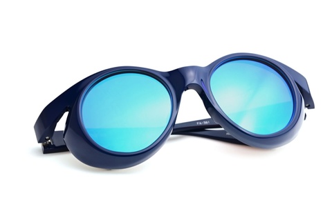 ここで同じブルーミラーを使用している「col.416」 (紺)ですが、実際に掛けた印象をご覧いただきます。