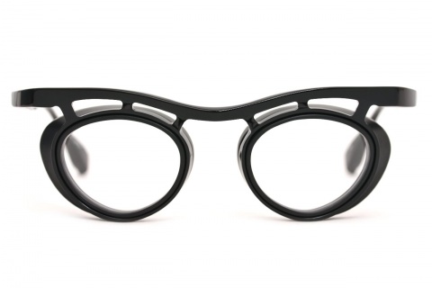 ブローラインとフードをつなぐ特徴的なリムとフレーム全体のバランスが秀逸で、メガネの未来を予期させる先鋭さを物語ってくれています。