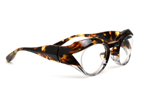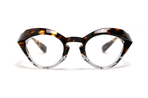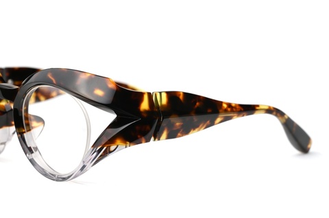 しかし、フロントからテンプルエンドまで、つじつまの合ったライン、そして細部にまで行き届いた面の作り込みによる造形など、どの角度から見てもスキのない美しい造形は、まさにFACTORY900の真骨頂といえる仕上がりです。