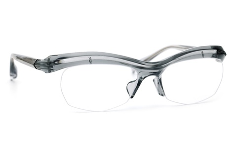 光の当たり方によってクリア系ならではの陰影が生まれ、ブローラインに走るスリットの様子がこの距離感だとハッキリ確認できます。先日もご紹介したブローフレームの名作「FA-208」に関しても、人気のカラーは「col.840」(クリアグレー)、今後「FA-428」のブルーグレーが皆さんにどのような評価をいただけるのか?今から楽しみなところです。