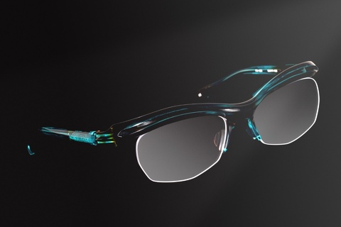 ブローフレームはデザイン上、眉のラインが強調されやすく、特にFACTORY900のような厚みある力強いブローフレームであればなおさらです。しかし、こちらの「col.493」(ブルーグレー)はクリア系のカラーということもあり、肌にも馴染みやすく特徴的なスリットの様子も至近距離でなければ強調されることはありません。
