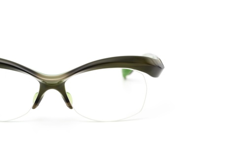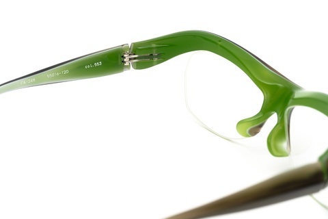 「col.553」(グリーンササ/グリーン)は、店頭に陳列していると背面のグリーンが非常に映えるカラーではありますが、実際に掛けるとなると、この鮮やかな色合いに躊躇してしまう皆さんもいらっしゃるかと思います(汗)