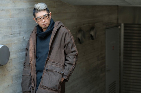 今年は黒のMA-1をアウターとして着る機会が多いワタクシですが、この日は撮影のため柿渋染のアウターで「col.170」の色合いとバランスを図りました。特にこの季節は身に纏うお洋服もボリュームがあり、「FA-441」のような重厚なメガネとの相性もさらによろしいかと思います。