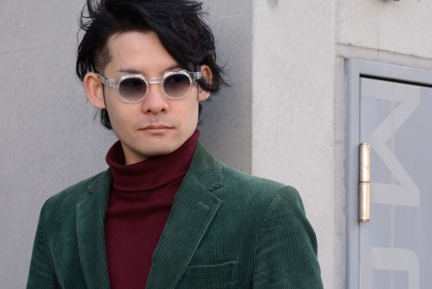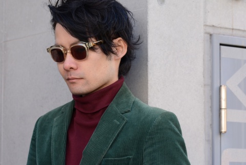 佐藤君の場合は肌の色が白い分クリアの方が肌に馴染みやすく、キハクの方が掛けた時の印象はよりハッキリします。また、オールド感のあるイエローが、落ち着いた雰囲気を感じさせますね。