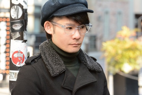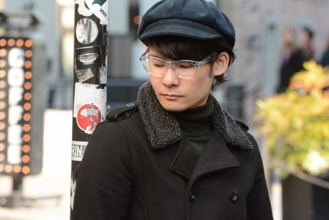 写真では分りにくいのですが、クリアカラーでありながらほんのり青みがかり、当初サングラス仕様として撮影を行う際、デザイナー青山もイチオシのカラーとしてこちらの「col.820」を採用しました。
