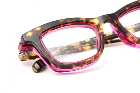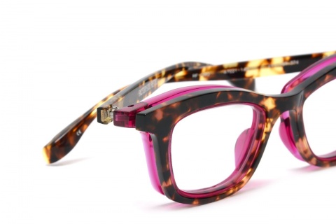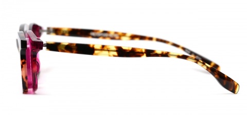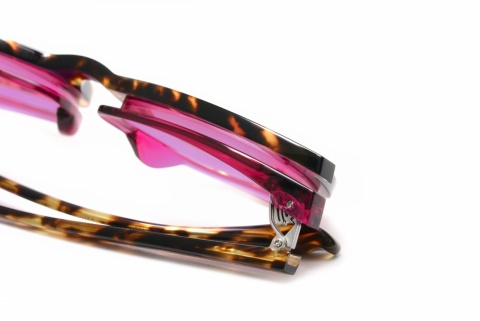 薄いフロントパーツの背面に、フード状のリムを組み合わせることで、通常のレトロシリーズとは全く異なる手法を用いてアセテートの厚みを表現しています。