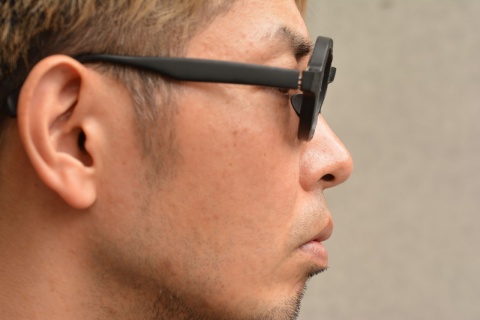思うに、カラーレンズを組み合わせサングラス仕様になると、また違った印象を与えるかもしれません。