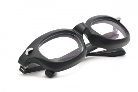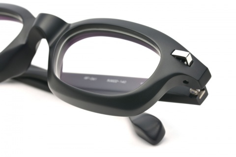 ブリッジ周辺の作り込みはもちろんですが、フロントリムにも多数のカット面を施し、無骨なスタイルといいながらも実際に掛けると野暮ったさを感じさせないフォルムに仕上がっています。