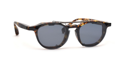 濃いカラーのフレームなので、クリップオンサングラスを付けるとヴィンテージ風のツーブリッジフレームにも見えますね。