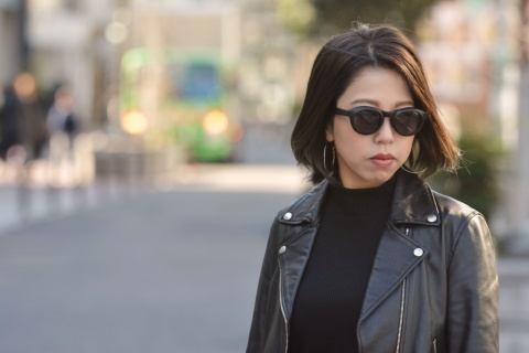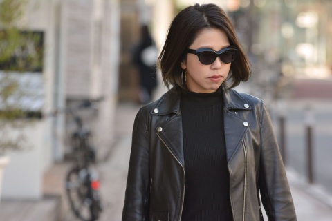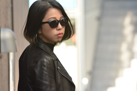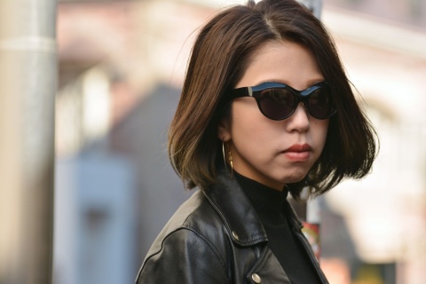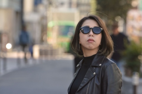 女性にとってメガネとしては難しい「RF-007」も、サングラスとして考えればこのサイズ感はむしろジャストサイズに。