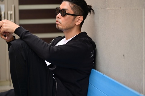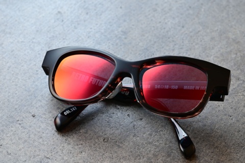 人生初となる、ラウンド型のメガネとして、今でもかなり気に入っておりますが、自身のスタイルがモードになっていくにつれ、ミラーレンズを搭載したサングラスがどうしても掛けたくなったという訳です。