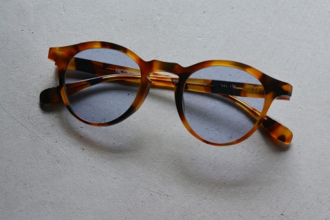ヴィンテージフレームのような味わいのあるcol.218(デミブラウン)と薄いブルーレンズの組合わせは、ハリウッド俳優のジョニー・デップやロバート・ダウニー・Jrがよく掛けているイメージです。ダンディで色気を感じます。