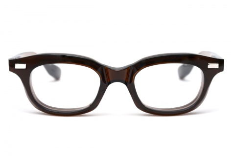 重厚なフロントから見えるシルバーの艶に目線が移ることで、メガネのボリュームを抑制します。