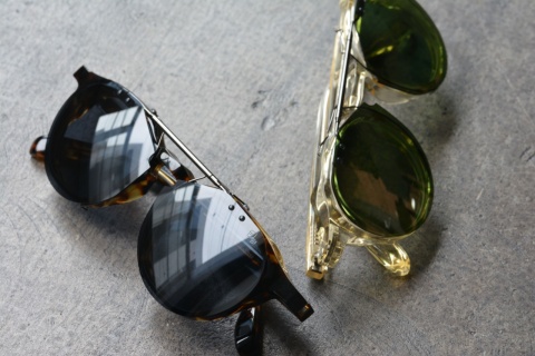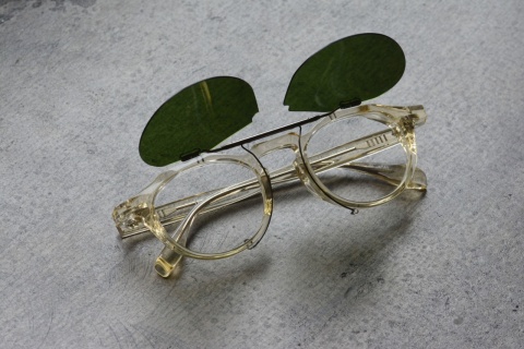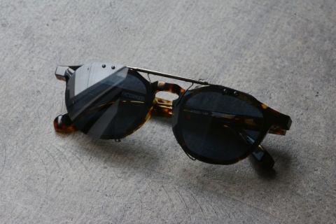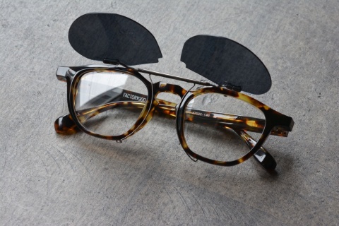 従来のクリップオンサングラスは肉厚なFACTORY900のフレームには収まらずに使用ができないため、この「RF-032」「RF-033」専用に調整して作製された共通のオリジナルのクリップオン式サングラス。