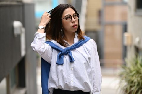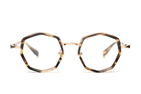 お顔の表情がハッキリするのはもちろんのこと、このスタイルサンプルを見る限り、変則的な玉型でありながらビジネスシーンでの活躍も期待できます。本来であれば、見た目の強さに負けてしまいがちな「col.001」ですが、カット面とゴールドのメタルパーツによって女性の皆さんにもチャレンジしていただきやすい「col.001」に仕上がりました。