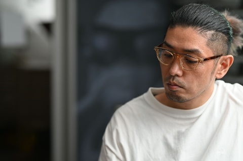 肌に馴染むクリアブラウンとレンズカラーとのコントラストがメリハリを感じ、クリップオンを跳ね上げた仕草も含め、そのスタイルからはどこか色気が漂います。