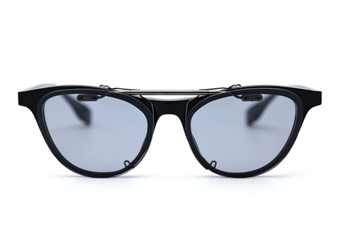クリップオンサングラスを付けることで、必然的にツーブリッジに変化しますが、エッジの効いたレトロシリーズとクリップオンの相性の良さを改めて感じます。