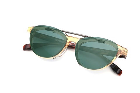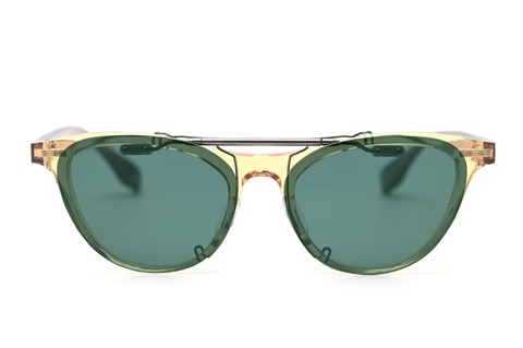 昨年からキハク・クリアといった透明感のある、いわゆるクリア系のフレームへの人気が高まっており、今の時代感を意識した「col.890」 (クリアブラウン)にG15と呼ばれるグリーン系のカラーレンズを使用したクリップオンサングラスの組み合わせです。