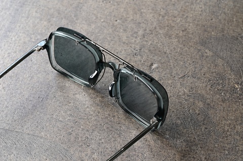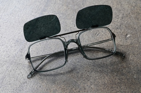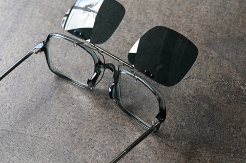 同じ「RF-307」のcol.577(ペールグリーン)に、跳ね上げと呼ばれるクリップオンサングラスを取り付けた特別仕様です。