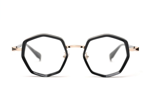 メガネに見慣れていない皆さんにとっては、その違和感とハードルの高さを感じさせてしまいがちな多角形ですが、このように”丸メガネ”と比較してみると、圧倒的に掛けやすいことがお分かりいただけるハズです。