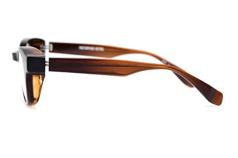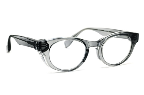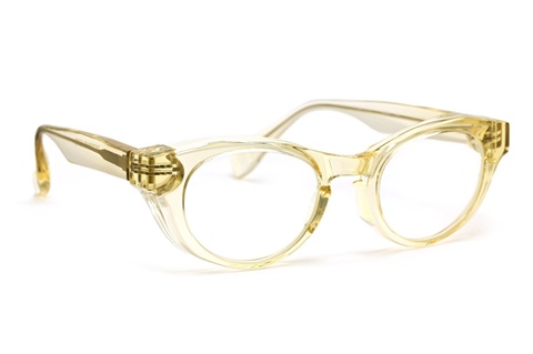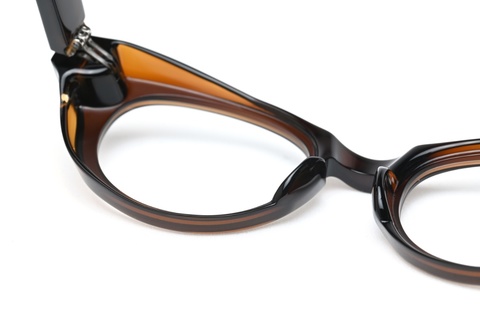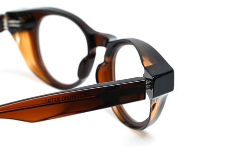 極厚のフロント裏側を⼤胆に⾁抜きし、ゴーグルのような⾒た⽬のボリュームからは想像できない軽やかな掛け心地を実現しました。これはワタクシ自身、初めてサンプルを手に取った時に最初に感じた今までのレトロシリーズとは全く異なる感覚です。