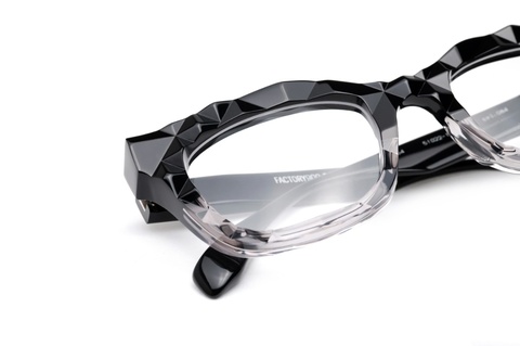 「col.001」や「col.565」など、透け感のない深みのあるカラーの方が光の反射によるダイヤモンドカットの輝きは体感しやすいところですが、メガネに個性が集中することを苦手とする皆さんには、コーディネートをするうえで取り入れやすいカラーといえるのではないでしょうか。