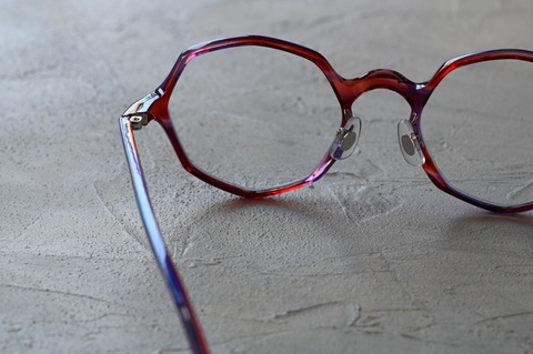 細さを追求した新シリーズは線の細さに目が行きがちですが、智元やレンズを支えるリム、さらには特徴のあるブリッジのせり出しなど、細部には見所が満載です。特に見る角度によって変化するフロントの厚みは、まさにFACTORY900ならでは。47mmというレンズサイズもあって強度近視の皆さんでも厚みを気にすることなくご使用いただけると思います。