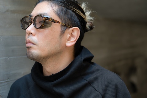 と、いうのも先にご紹介した「col.001-840」とは異なり、フード状のパーツにも色合いがハッキリと見えることでゴーグル感が増し、過去の経験からカラーレンズを組み合わせた方がよりバランスがとりやすいと判断しました。ご覧のように、レンズ濃度は決して濃くはありませんが「RF-056」のボリューミーなフォルムとバランスが取れたかと思います。