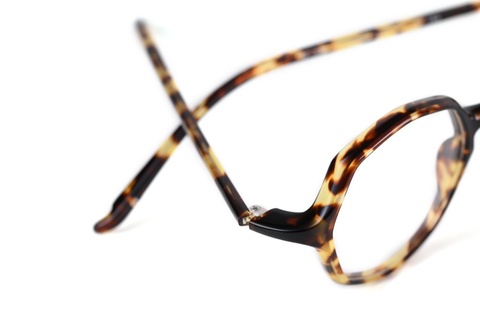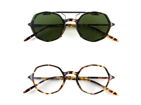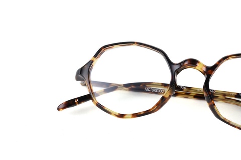 「RF-305」はラウンド型、「RF-307」はオーバーサイズのスクエア型、そして今日ご紹介する「RF-306」はFACTORY900らしい多角形です。そんな「RF-306」col.159(バラフ)に組み合わせたのは、ガンメタルのメタルパーツ、そしてグリーンの偏向レンズです。