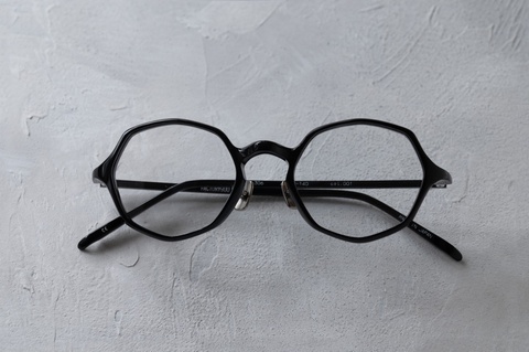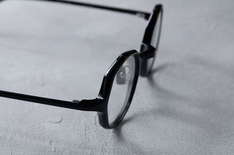 ご覧の通り、「RF-306」はFACTORY900らしい多角形、クラシカルでありながらどこか未来感のある玉型は、一般的なラウンド型(丸メガネ)に比べ、合わせやすく、コーディネートも取り入れやすいことが特徴になります。
