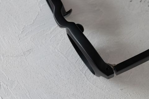 シンプルだからこそダイレクトに現れる表面の仕上がり、特に「RF-007」や「RF-008」は、青山眼鏡が誇る熟練の職人による仕上げ磨きの精度の高さが遺憾なく発揮されています。その美しいフォルムがマットブラックによってより際立っていることもはや言うまでもありません。