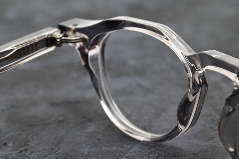 レンズシェイプも取り入れやすいボストン型をベーズに、トップリムに見えるエッジの効いたラインがお顔立ちにメリハリを与えます。また、ご試着の際は正面からだけではなく、是非斜めからの見え方もご確認ください。フロントリムの厚みの強弱によって生まれる立体感は、まさに「RF-032」の大きな見所となります。