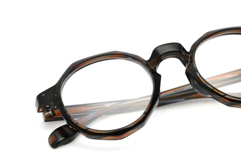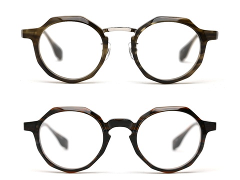 レトロシリーズでは人気の多角形、ボストン型でもラウンド型でもなく、程よいエッジ感のあるフロントシェイプとサイズ感が人気のヒミツです。メタルパーツとのコンビネーションフレームとオールセルフレーム、スタイルは違えどその近しいシェイプによって、どちらのモデルにするか悩まれる皆さんもいらっしゃるのではないでしょうか。
