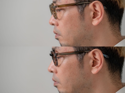 メタルパーツを使用したコンビネーションフレームとオールアセテート、実際にお顔に合わせてみた際には、どういった印象の変化が現れるのでしょうか。
