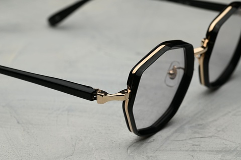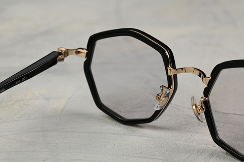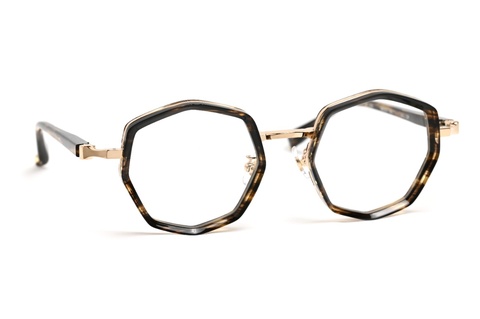 特徴的なテレビジョンカットに多角形のレンズシェイプと、メガネとしては個性が強く感じる皆さんも多いと思います。特に「col.001」(黒)に関していえば、エッジの効いたシェイプが際立ち、よりハードルが高く感じられるかもしれません。しかし、こういった淡いカラーは、フレームのクセを緩和させる効果もあり、今まで掛けこなせなかったメガネがぐっと身近に感じられるようになるハズです。