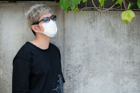 フレームカラーも透け感のあるブルーグレーということで、マスクをした状態でもそこまで威圧感を感じません。言い換えると「col.001」(黒)などソリッドなフレームカラーは、フロントの厚みが見た目の印象にプラスされ、クリア系のカラーとは異なる印象になるかと思います。